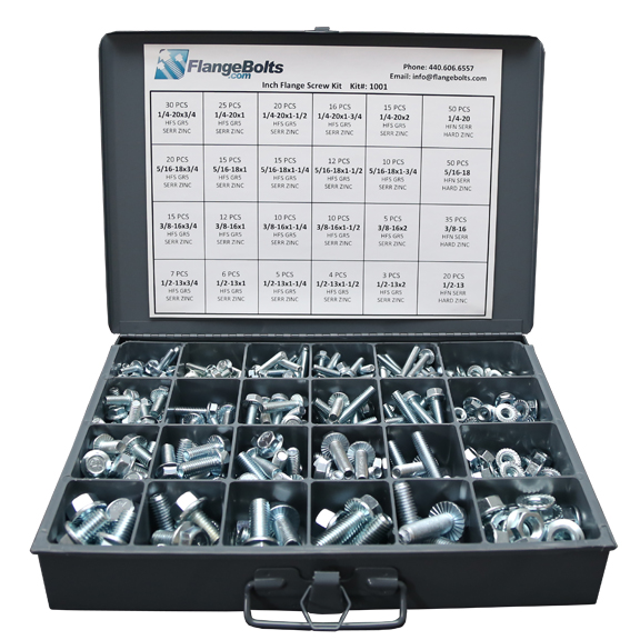 Home > Shop > Kits/Assortments > Flange Product Kits > Inch Grade 5 Serrated Hex Flange Bolts & Lock Nuts Assortment - 410 PCS